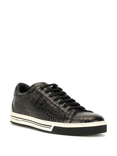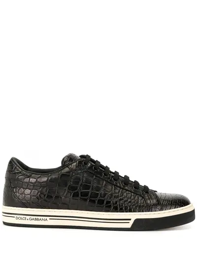 Коллекция Dolce & Gabbana осень-зима 2019 представила новый взгляд бренда на классические модели, объединив традиционный стиль и инновационный подход к пошиву. Среди них черные кеды Rome из кожи теленка, крокодила и козы с тиснением от Dolce & Gabbana (Дольче энд Габбана). Шнуровка спереди, закругленный носок, тиснение под кожу крокодила, плоская резиновая подошва. Пожалуйста, обратите внимание, что данный товар не может быть отправлен за пределы США.