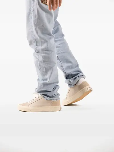 Подробнее о товаре: • светло-бежевый • замшевые вставки • контрастные белые шнурки • дутые воротник • резиновая подошва • логотип • закругленный носок • минималистичный дизайн • мягкая стелька • Это унисекс-модель. Обратите внимание, что для нее используется мужская размерная сетка.