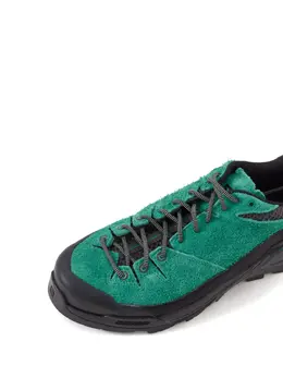 Зеленая замша, шнуровка, мягкий воротник, резиновая подошва, принт с логотипом