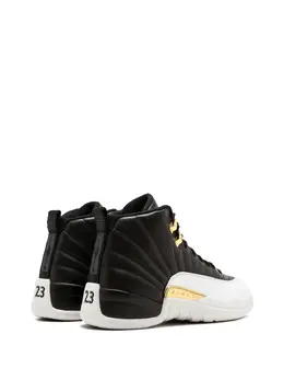 Подробнее о товаре: Черные кожаные кроссовки 'Air Jordan 12 Retro' от jordan. Миндалевидный носок, шнуровка спереди, фирменная стелька, уплотненная щиколотка, золотистая фурнитура, резиновая подошва.