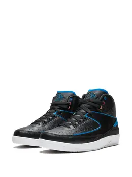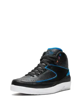 Кроссовки 'Air Jordan 2' от jordan. Закругленный носок, перфорированная деталь, шнуровка спереди, язычок с логотипом, фирменная стелька, уплотненная щиколотка, фирменный дизайн каблука и резиновая подошва. Цвет: черный с синим и белым.