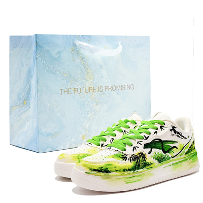 Anta Комфортные противоскользящие амортизирующие низкие кроссовки для скейтбординга мужские белые, зеленые, желтые 912518001q-2(team 1083-云梦翠影ox) | white green yellow