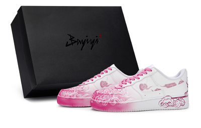 Эти кастомные кроссовки представляют собой оригинальные кроссовки Nike Air Force 1 – классические низкие кроссовки из коровьей кожи в ретро-стиле чистого белого цвета. Артикул: CW2288-111, номера аксессуаров: DH2920-111, DD8959-100 и FV5951-111. Оригинальный дизайн кроссовок выбран случайным образом. Основной цвет – белый с розово-красными акцентами, что создает уникальный и яркий образ. Нарисованные вручную благоприятные облака и волны усиливают общую узнаваемость и подчеркивают детали. В комплект входит специальная коробка для обуви.