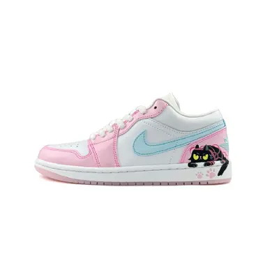Jordan Баскетбольные кроссовки Air 1 Woolen Kitten, износостойкие, винтажные, низкие, женские, розовые hm3706-141(team865-毛线小猫) | pink