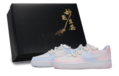Nike Кроссовки Air Force 1 Magic Brush Blooms, розово-голубые, низкие, для скейтбординга, унисекс, белые, розово-голубые cw2288-111(team171-粉蓝泡泡s-box) | white pink blue