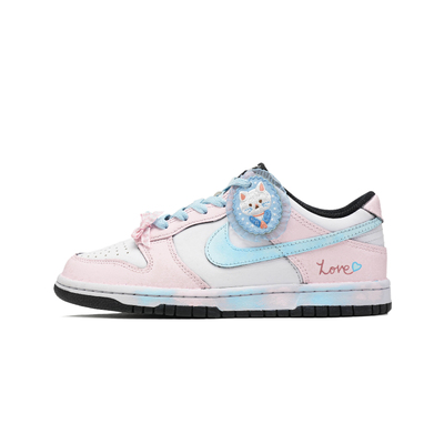 Эти кроссовки созданы на основе классических, популярных и прочных низких женских кроссовок Nike Dunk "White/Black" Panda Leather, артикул DD1503-101. Дизайн вдохновлен милой девчачьей атмосферой! Представьте себе очаровательную кошечку, которая обожает розово-белую одежду и летает, словно по облакам. Этот розово-белый градиент использован в кроссовках. Светло-голубой логотип напоминает ее любимое голубое небо. Бантик из шнурка - небольшое украшение для ее волос, а значок с котом на кроссовке - ее котенок. «Любовь» - сладкое слово, которое она всегда произносит. Носить эти кроссовки - все равно что следовать за кошечкой, играя с ней повсюду, неся на себе очарование и жизнерадостность.