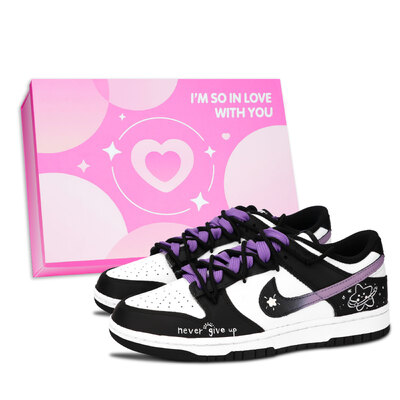 Nike Кроссовки для скейтбординга Dunk Black White, Star Never Gives Up, износостойкие, низкие, унисекс, черные, фиолетовые dd1391-100(team883-星永不弃女鞋盒) | black purple