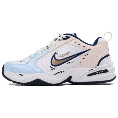 Эта кастомная версия выполнена в оригинальном стиле Nike Air Monarch 4, артикул 415445-102. Сине-розовая цветовая гамма, вдохновленная нежностью любви, подчеркивает ее, создавая более насыщенный и универсальный образ.