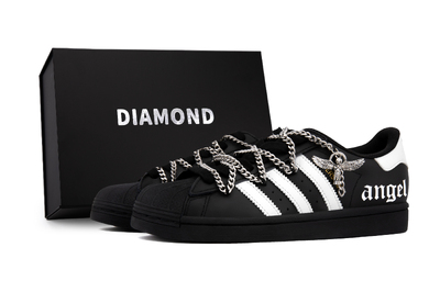 Эти кроссовки, изготовленные на заказ, представляют собой оригинальную модель низких кроссовок adidas Originals Superstar с мыском-ракушкой, доступную в черном и белом цветах для мужчин и женщин, артикул EG4959. Вдохновленный ангелами, дизайн искусно сочетает белые элементы с классическим черным верхом, сохраняя классическую и изысканную эстетику, но добавляя нотку божественного света. Специально разработанная двойная шнуровка подчеркивает общую многослойность. Все фотографии сделаны с оригинала. Возможны незначительные отклонения в цвете из-за воздействия окружающей среды и экипировки. Кроссовки, изготовленные на заказ, изготавливаются вручную для повседневной носки. Избегайте интенсивных физических нагрузок, царапин от острых предметов и использования высококонцентрированных органических растворителей.