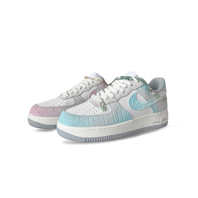 Nike Кроссовки для скейтбординга Air Force 1, износостойкие, женские, розово-синие dx2678-100(team470-灵蛇献瑞) | pink blue