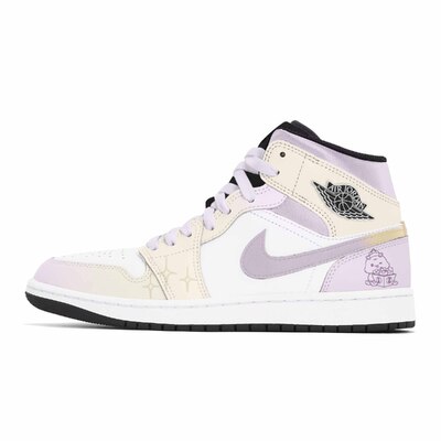 Jordan 1. Износостойкие и легкие винтажные баскетбольные кроссовки средней высоты, унисекс, розовые, фиолетовые dq8426-001(team778-甜梦奇缘) | pink purple