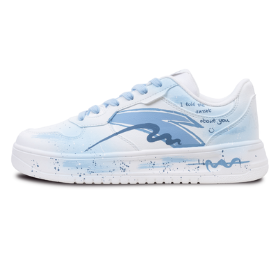 Эти кастомные кроссовки включают в себя оригинальные удобные, нескользящие и амортизирующие белые низкие мужские кроссовки Anta (артикул 912418001Q-2) и аксессуар (артикул 912518001Q-2). Оригинальный дизайн кроссовок выполнен в произвольном стиле, а общий дизайн основан на синем оттенке. Добавление уникальных граффити усиливает модные элементы и придает кроссовкам неповторимый шарм. Все кастомные кроссовки изготавливаются вручную, поэтому каждая пара может иметь небольшие различия.