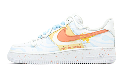 Nike Кроссовки Air Force 1 Low Top для скейтбординга, мужские, белые, синие, оранжевые cw2288-111(team1171-冲浪夏日) | white blue orange