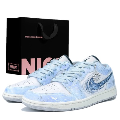 Jordan Кроссовки Air 1 для скейтбординга, износостойкие, низкие, мужские, небесно-голубые fq7687-300(team169-银锁lucky黑) | sky blue