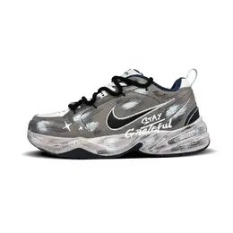 Эта кастомизированная версия кроссовок создана на основе оригинальных кроссовок Nike Air Monarch 4 Dad, артикул 415445-102. Модель выполнена в классическом коричневом цвете с эффектом потертости, а верхняя часть украшена деконструкцией в стиле уличного граффити. Она модная и универсальная, с множеством деталей.