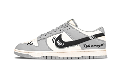 Эта кастомная версия представляет собой оригинальные мужские низкие кроссовки Nike Dunk Retro "Grey Fog" из серо-белой коровьей кожи, артикул HF5441-100. Дополнительные артикулы: HF5441-105, DD1503-103 и DD1391-103.