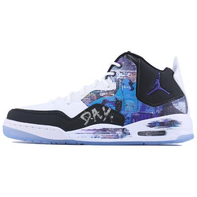Эти фирменные кроссовки - оригинальные кожаные Jordan Courtside 23 Concord, винтажные баскетбольные кроссовки средней высоты с нескользящей подошвой для мужчин и женщин, модель AR1000-104. Вдохновленная современными граффити, черно-бело-сине-фиолетовая цветовая гамма создает стильный, целостный дизайн.