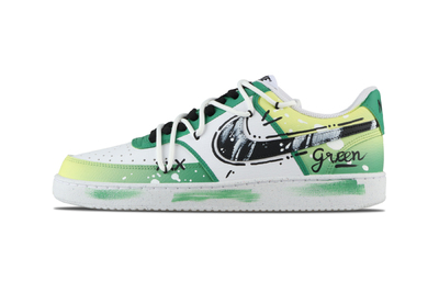 Эта пара, изготовленная на заказ, представляет собой оригинальную модель Nike Court Vision с номером DH2987-101 и дополнительным номером HM9862-002. Кроссовки выполнены в зелено-черной цветовой гамме, отличающейся простотой и универсальностью, а граффити придают им еще более стильный вид.