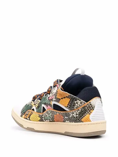 Эффект змеиной кожи, перфорация, петля для подтягивания на язычке, закругленный носок, шнуровка спереди, стелька с логотипом и плоская резиновая подошва.