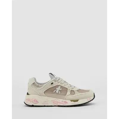 Бежевые кроссовки Premiata поддержат образ в спортивном стиле. Модель выполнена из сочетания текстиля и кожи. Внутри подклад и стелька из натуральной кожи. Резиновая подошва дополнена фирменным принтом, а завершает дизайн нашивка с логотипом бренда. За счет базового сочетания оттенков, пара легко впишется и в повседневные образы с джинсами и спортивными трикотажными брюками.
