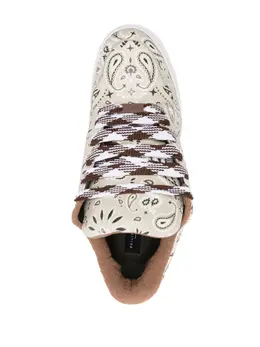 Светло-бежевый, принт пейсли, вставки, закругленный носок, шнуровка спереди, стелька с логотипом и плоская подошва.