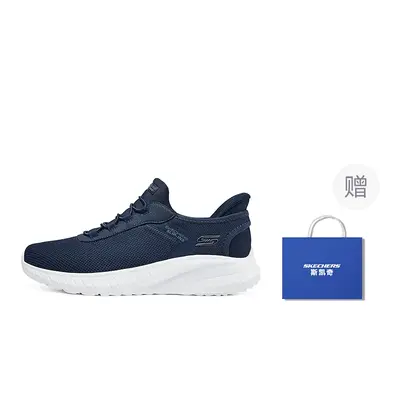 Слипоны с амортизацией износостойкие облегченные низкие повседневные кроссовки мужские Navy Skechers, морской синий+подарок 118303-nvy | marine blue+giveaway