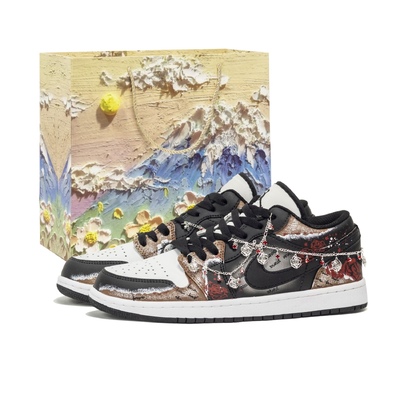 Jordan Эйр 1 Фэнтези, Лав Роуз амортизирующие низкие винтажные баскетбольные кроссовки унисекс черные - черные, в подарочной упаковке, цвет Black, Shopping Bag 553558-132(team1210-情话玫瑰礼袋款) | black, shopping bag