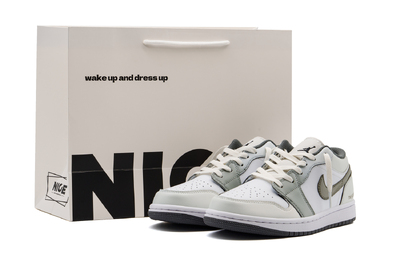 Jordan Кроссовки Unisex Air 1 с амортизацией, износостойкие низкие винтажные баскетбольные светло-серые, цвет Light Gray (Shopping Bag) 553558-152(team1403尘墨旧信sbox) | light gray (shopping bag)
