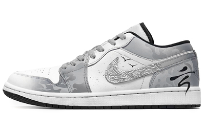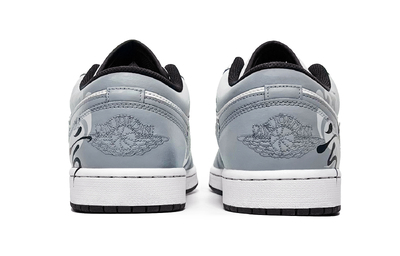Jordan Кроссовки баскетбольные мужские Air 1 с амортизацией, износостойкие, низкие, винтажные, черно-бело-серые, цвет Black White Gray 553558-132(team285-云翎掠影) | black white gray