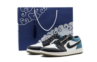 Jordan Кроссовки баскетбольные Air 1 с амортизацией, износостойкие, низкие, винтажные, унисекс, бело-сине-черные, цвет White, Black, Blue Shopping Bag 553558-092(team1098蓝主人公) | white, black, blue shopping bag