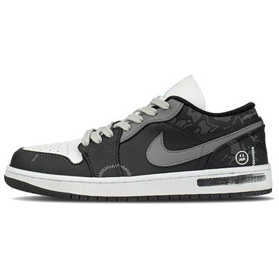 Jordan Кроссовки баскетбольные Air 1 с амортизацией низкие винтажные унисекс черно-серые, цвет Black Gray 553558-165(team845记忆碎片-box) | black gray