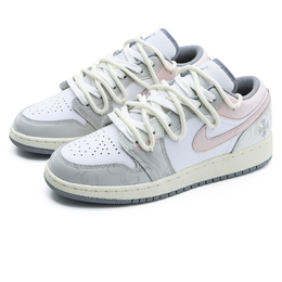 Jordan Эйр 1 амортизирующие противоскользящие и износостойкие низкие винтажные баскетбольные кроссовки GS серо-розовые, цвет Gray Pink 553560-053(team126-蔷薇代码) | gray pink