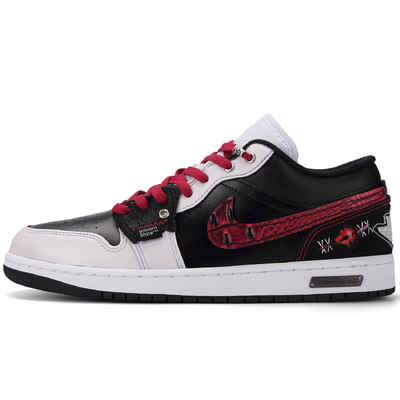 Jordan Эйр 1 Апокалипсис Драгон Трайб устойчивые к истиранию низкие винтажные баскетбольные кроссовки мужские черно-красные, цвет Black Red 553558-165(team1225-末世-龙族) | black red