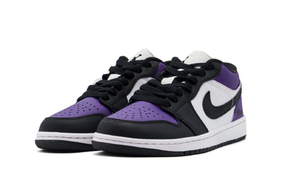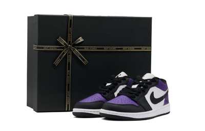Jordan Эйр 1 устойчивые к истиранию низкие винтажные баскетбольные кроссовки унисекс черно-бело-фиолетовые, цвет Black White Purple dc0774-101(team1393-黑紫1sbox) | black white purple