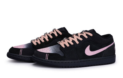 Jordan Винтажные баскетбольные кроссовки Air 1 мужские низкие розово-черные, цвет Black Pink fd8635-001(team80-男款黑粉麂皮s-box) | black pink