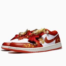 Jordan Эйр 1 Счастливый Дракон и Феникс Противоскользящие Низкие Кроссовки Винтажные Баскетбольные Мужские Красные Желтые, цвет Red Yellow fj3459-160(team240-龙凤呈祥) | red yellow