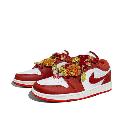 Jordan Эйр 1 противоскользящие износостойкие низкие винтажные баскетбольные кроссовки унисекс красно-белые, цвет Red White fj3459-160{team393-喜缘礼盒} | red white