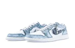 Jordan Эйр 1 противоскользящие износостойкие низкие винтажные баскетбольные кроссовки мужские синий белый - синий белый, цвет Blue White fq7687-300(team626-太虚幻境) | blue white