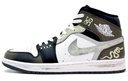 Jordan Эйр 1 износостойкие мид-топ винтажные баскетбольные кроссовки унисекс черный белый коричневый - черный белый коричневый, цвет Black White Brown dq8426-001(team372-蛇启祥瑞) | black white brown