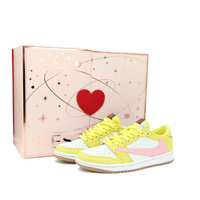 Jordan Трэвис Скотт X Air 1 винтажные баскетбольные кроссовки женские низкие желто-розовые Трэвис Скотт X AJ1 520, цвет Yellow Pink Travis Scott X AJ1 520 dz4137-700(team肆叁柒-黄粉倒钩礼盒) | yellow pink travis scott x aj1 520