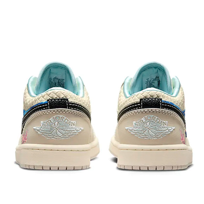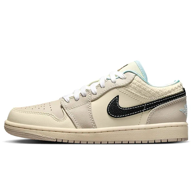 Jordan Эйр 1 противоскользящие износостойкие низкие винтажные баскетбольные кроссовки женские бежево-сине-черные, цвет Beige Blue Black hq3440-101(team181-富士山樱花) | beige blue black
