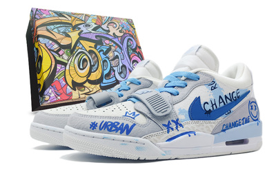 Jordan Легаси 312 противоскользящие и износостойкие дышащие низкие винтажные баскетбольные кроссовки мужские бело-сине-серые, цвет White Blue Gray hq1190-101(team188-蓝调涂鸦s-box) | white blue gray