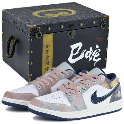 Jordan Винтажные баскетбольные кроссовки Air 1 мужские низкие сине-розовые "Вечернее сияние" подарочная коробка "Морской дар" 10, цвет Evening Glow Sea-Gift Box 10 ih0648-141(team679-火烧云海s-box) | evening glow sea-gift box 10