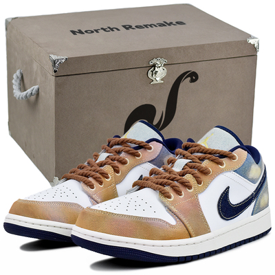 Jordan Кроссовки Air 1 устойчивые к истиранию мужские низкие винтажные баскетбольные коричневые синие деним рассвет коробка 4, цвет Denim Dawn-Box 4 ih0648-141(team96-牛仔晨昏s-box) | denim dawn-box 4