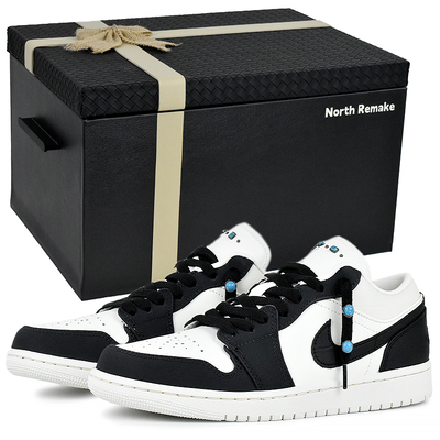 Jordan Кроссовки Air 1 устойчивые к истиранию низкие винтажные баскетбольные мужские черно-белые - Ленточка Панды-Подарочная коробка 4, цвет Panda's Ribbon-Gift Box 4 io2242-101(team96-熊猫的纽带s-box) | panda's ribbon-gift box 4