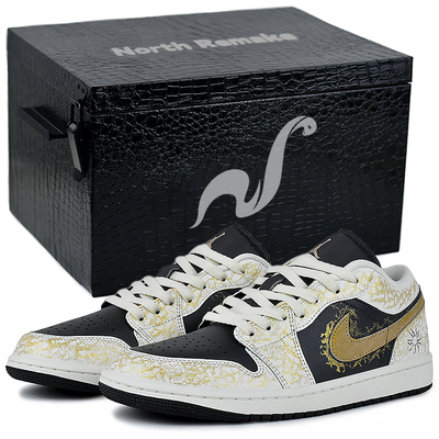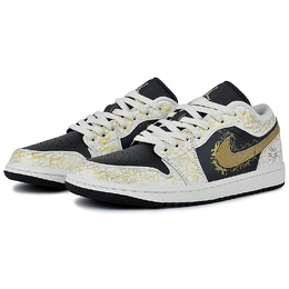 Jordan Кроссовки мужские Air 1 Abrasion Resistant Low Top Vintage баскетбольные черно-белые с золотым богом солнца в подарочной коробке, цвет Gold Sun God-Gift Box 2 ih0649-021(team96-金色太阳神s-box) | gold sun god-gift box 2