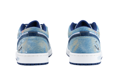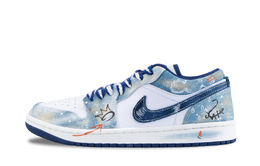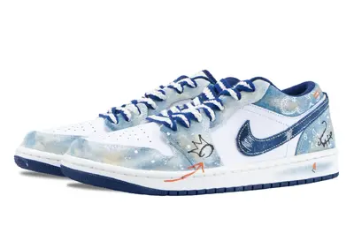 Jordan Эйр 1 Граффити Деним Износостойкие Лоу-топ Винтажные баскетбольные кроссовки Мужские Бело-Голубые - Бело-Голубые (Специальная коробка), цвет White Blue (Special Box) ih0648-141(team836-涂鸦牛仔-sbox) | white blue (special box)