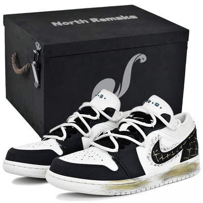 Jordan Эйр 1 Легкие низкие винтажные баскетбольные кроссовки мужские черно-бело-золотые черно-бело-золотые подарочная коробка 4, цвет Black White Gold-Gift Box 4 io2242-101(team96-黑金荆棘s-box) | black white gold-gift box 4