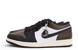 Jordan Эйр 1 устойчивые к истиранию кроссовки мужские низкие винтажные баскетбольные черно-коричневые белые, цвет White 553558-081(team拾伍-男女同款黑棕) | white