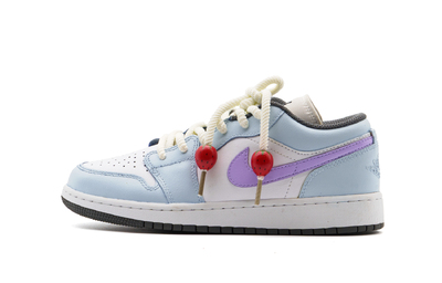 Jordan Эйр 1 Лоу Топ Винтажные баскетбольные кроссовки унисекс белый синий фиолетовый, цвет White Blue Purple 553558-152(team1098草莓灵动) | white blue purple